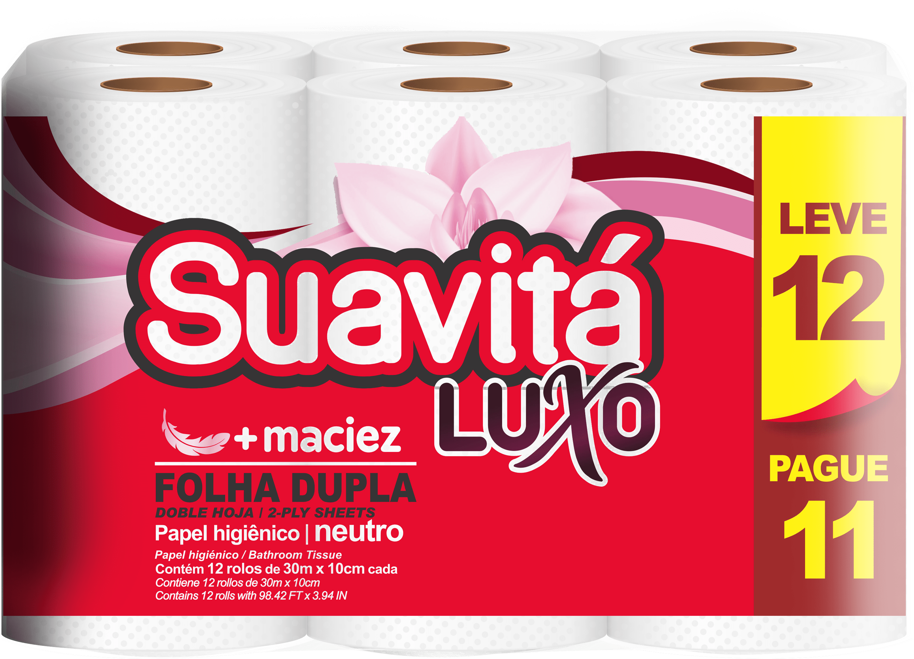 Papel Higiênico Folha Dupla Suavitá Luxo 30m C/12 Rolos - Embalagens Bacarin