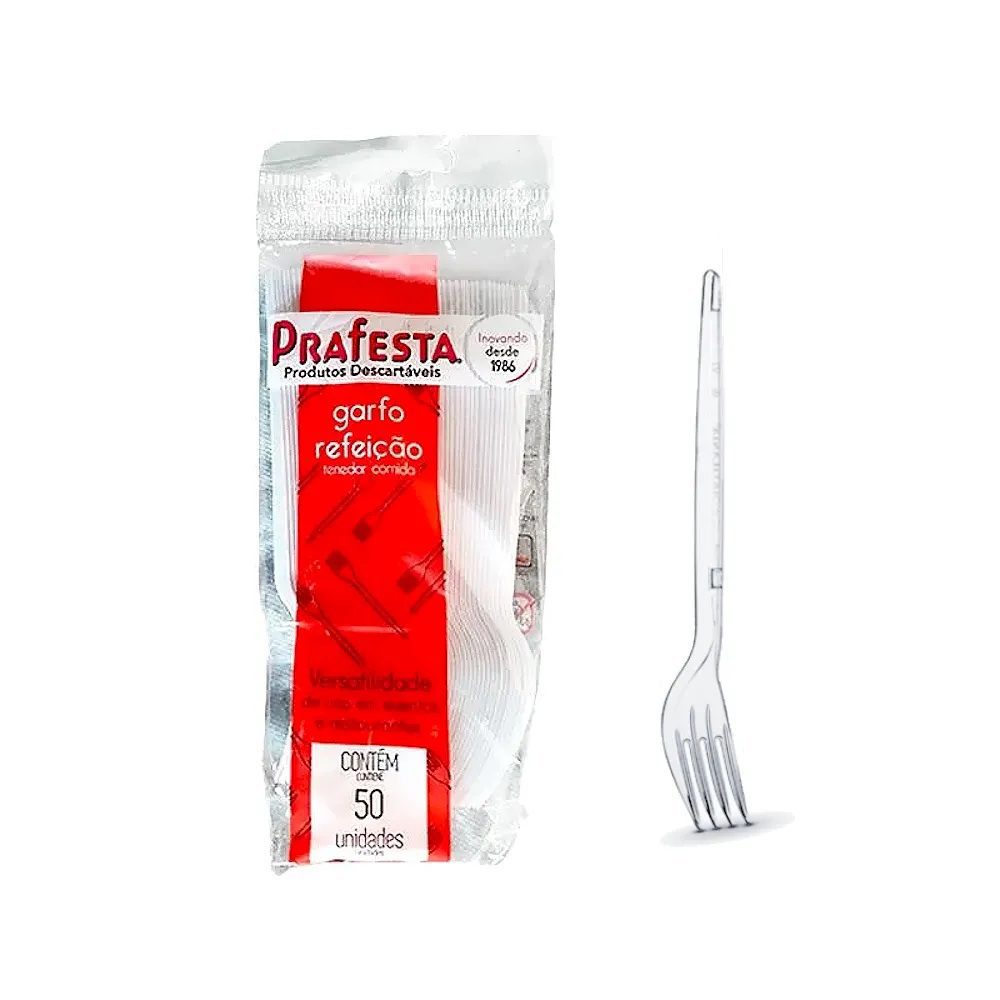 Garfo Plástico Para Refeição Mod Cristal Premium Com 50 Unidades Prafesta